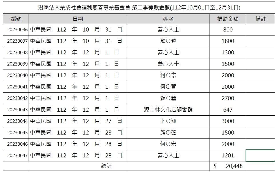 2023年10-12月捐款明細