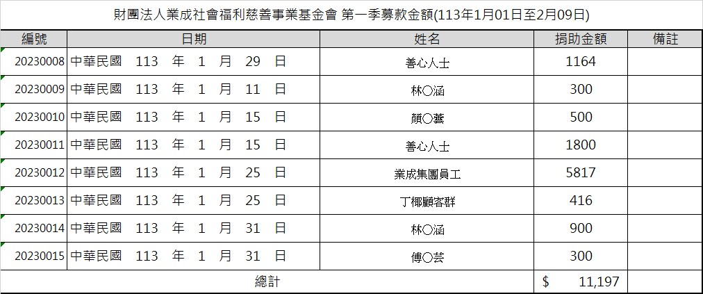 2024年1月捐款明細