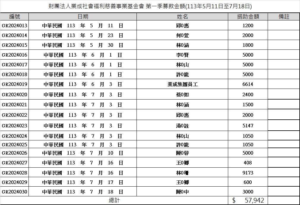 2024年5月至7月捐款明細