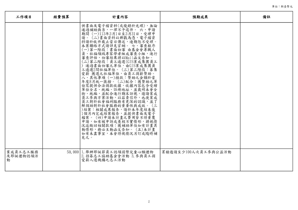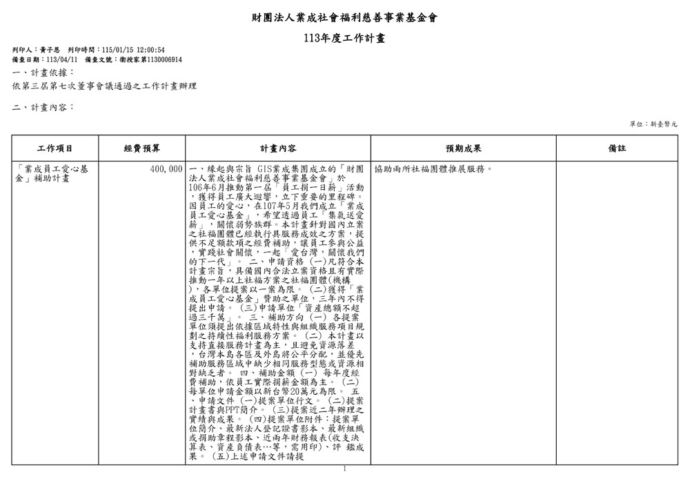 業成員工愛心基金補助計畫