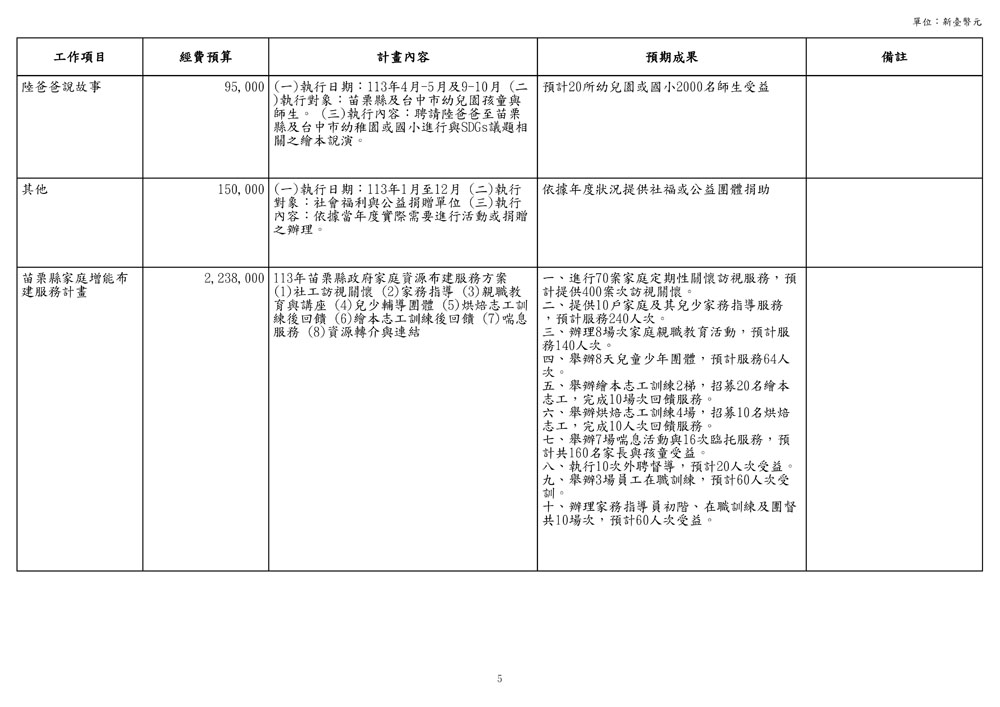 公益服務方案經費補助